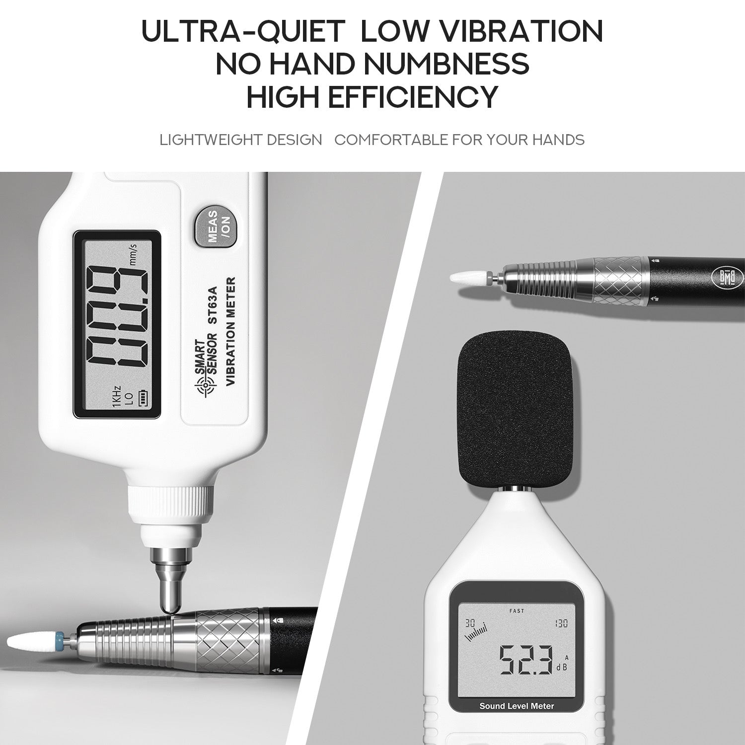 - Low vibration design reduces hand strain and improves precision control