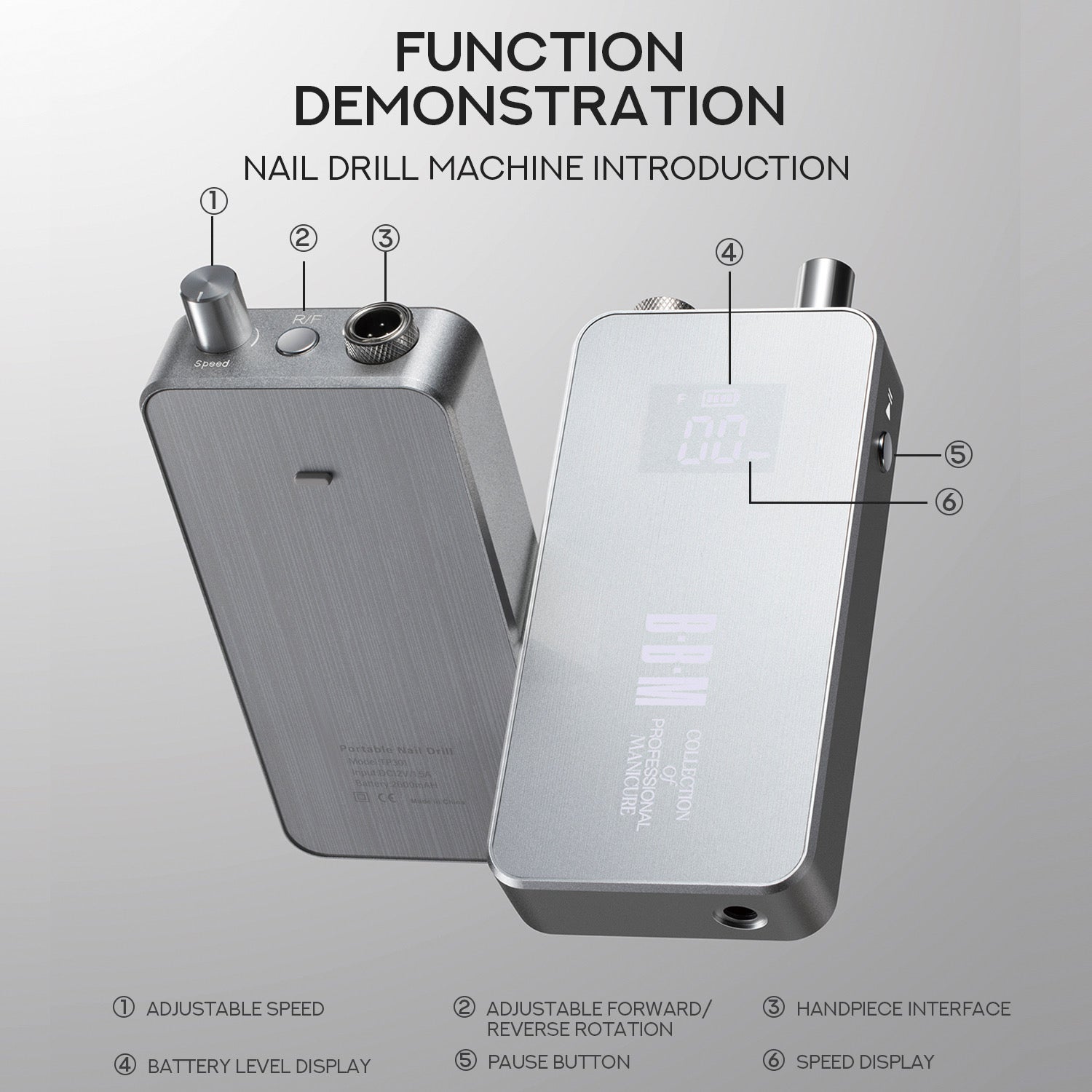 Professional Brushless Ultra quiet low vibration Electric Nail E File Drill